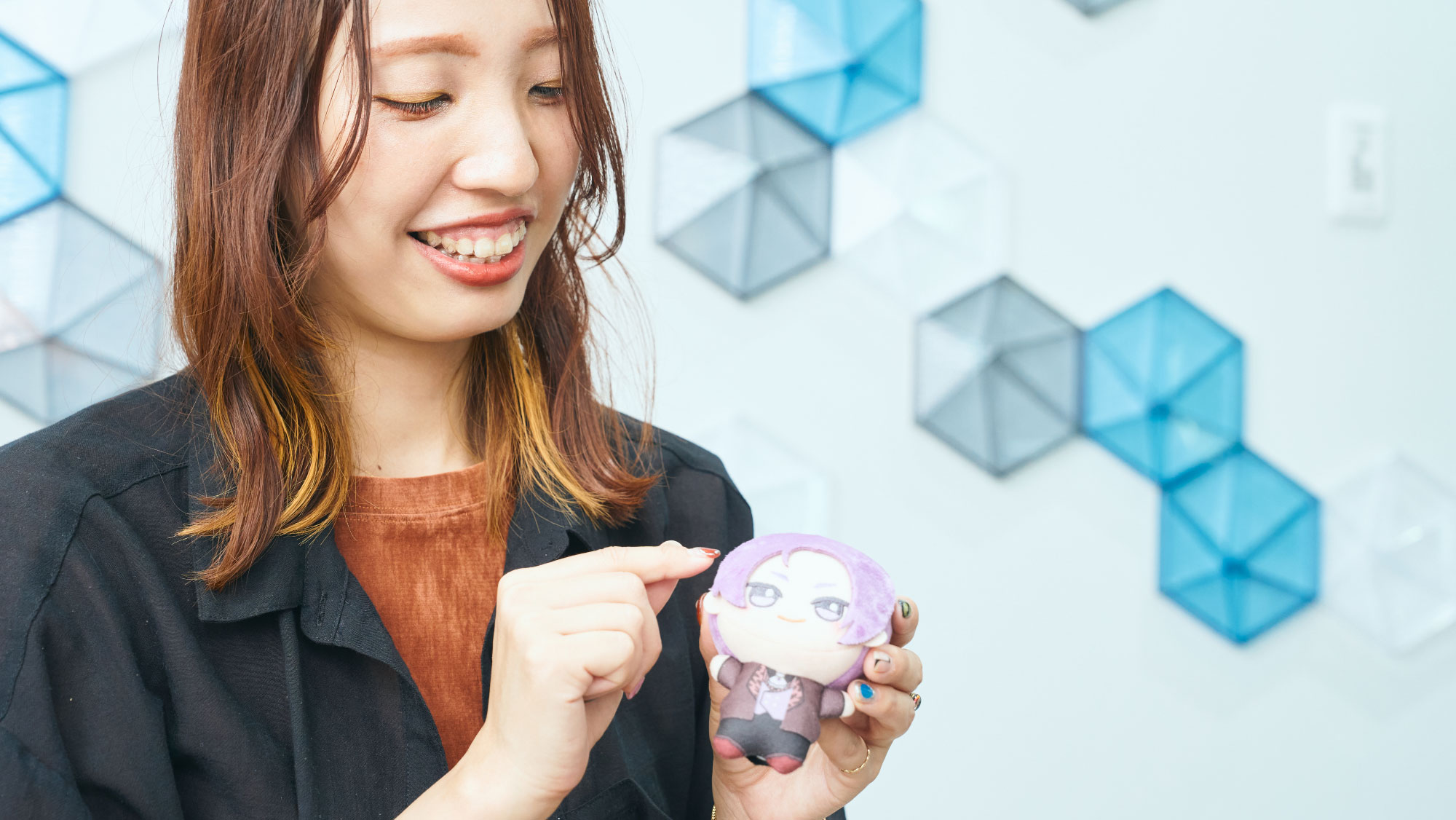 また、難しいのが、実在する人物の「ちびぐるみ」です。ご本人の特徴をしっかりとらえた上で、ちびぐるみの3つの特徴に当てはめデフォルメするようにしています。K-POPの4人組ガールズグループ『aespa』では、眉毛や目尻の角度やその楽曲当時の髪型、瞳の色など細かい部分までご本人を研究して、ご本人“らしさ”を表現するように調整を重ねました。